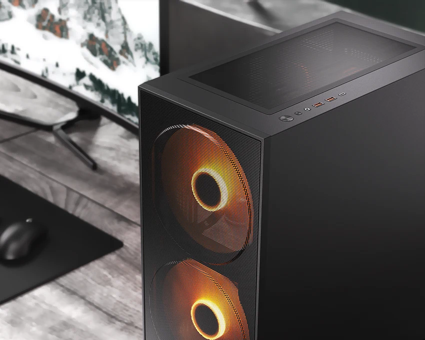 开箱即战斗!双 160mm ARGB PWM 风扇已预先安装并整合于 3 合 1 前面板模组中,不仅省下安装时间,更立即为系统提供最佳化散热效能。