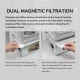 中空悬浮气流架构内,上下皆配置磁吸式防尘滤网,防止灰尘与异物累积,维持干净畅通的气流,同时不影响悬浮设计。