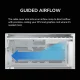 CFV235 系列的悬浮架构在机壳内创造三面无遮蔽空间,实现 270° 大面积进气,相较于传统机壳带来更有效率的进气表现,并精准将气流引至关键散热位置。