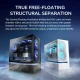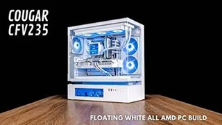New all-AMD white build in the COUGAR CFV235 Vision – no talk, just cinematic b-roll and ASMR-style assembly of a floating mid-tower packed with a Ryzen 9 9950X3D and a PowerColor Hellhound RX 9070 XT.