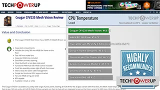 "The CFV235 Mesh Vision earned a Highly Recommended award, with reviewers saying: "Overall the Cougar CFV235 works well, looks very cool, and provides a solid, future-proof and refreshingly different basis for your next build..."