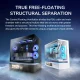 1.5mm 厚钢材强化机壳结构,即使采用中空悬浮架构,也能维持稳固与耐用。设计工艺造就大胆的开放式架构,在高效能组装下依然刚性十足。