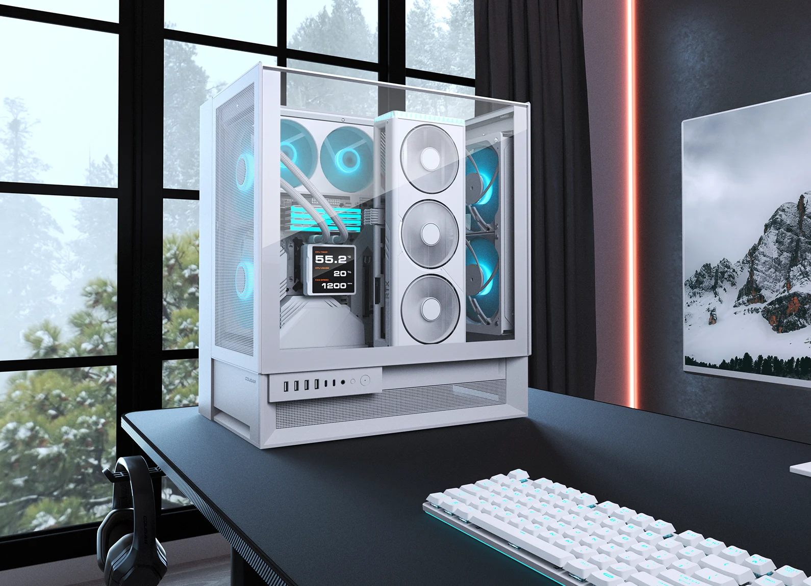 POSEIDON 波塞冬 VP360 / 240 LCD 一体式 水冷 CPU 散热器 视界更大,冷却更强 超大 3.95 吋 IPS TFT LCD 显示萤幕,提供高清、即时的系统监控画面,画质细致,资讯一目了然。不仅支援自订画面风格,更搭载强效水冷系统,实现效能与视觉双重升级。” Type 3.95 吋 IPS TFT LCD 大萤幕,以 720 x 720 高解析度与 60Hz 更新率呈现清晰的即时资讯透过控制软体即可在桌面完整查看系统数据支援 JPG/PNG/GIF/MP4 档案格式,轻松打造专属你的显示内容采用单框 PWM 风扇,提供精准散热、简洁布线与炫丽 RGB 灯效UTTERIGHT 直角排列冷排鳍片,有效扩大散热面积,提升散热效率支援 AMD AM5 与 Intel LGA 1851 脚位。 下载 COUGAR LCD 编辑软体 Robeytech Read More “I don’t know if this is quite like a Honda turning into a Lambo, but it’s definitely a lot more eye-catching.” Tech4Gamers Read More “A great mix of power, value, and modern looks.” Previous Next 大螢幕監控.視覺全面升級 大萤幕监控.视觉全面升级 搭载 3.95 吋 IPS TFT 正方形萤幕,以 720 x 720 高解析度 和 60Hz 流畅刷新率呈现即时数据资讯。无论从哪个角度观看都清晰无比,打造顶级监控体验。 3.95 吋 正方形萤幕 IPS TFT 超清晰显示器 720 x 720 解析度 60Hz 刷新率 全面掌控,就在桌面 透过软体即时存取系统资讯与自订设定,像指挥中心一样一手掌握,操作直觉、便利,实现全方位掌控。 下载 COUGAR LCD 编辑软体 随你喜好,自订视觉风格 支援JPG/PNG/GIF/MP4.* 等格式,自由上传图片、动画或影片片段,展现个人风格内容。无论是电脑效能资讯还是个性化展示,全在一个画面内搞定! *档案大小限制为20MB 即时监控 温度、负载、风扇转速等数据一目了然。 个人风格 支援照片、Logo 和各种创作视觉。 动态画面 支援动画GIF、影音片段等,画面活起来超吸睛。 快速安装.智慧控温 单框整合式 PWM 风扇设计,简化多风扇串接,提供精准转速控制、低噪音高效散热与 RGB 灯效同步,轻松实现静音与效能并存。 全新平台支援 完美对应 AMD AM5 与 Intel LGA1851 插槽,与最新处理器平台全面相容,升级零组件更弹性。 全新平台支援 完美对应 AMD AM5 与 Intel LGA1851 插槽,与最新处理器平台全面相容,升级零组件更弹性。 散热效率再突破 创新 UTTERIGHT 直角散热鳍片结构,精准排列大幅扩展热传导面积,有效提升散热效率,超越传统冷排设计。 强化散热面积,效能稳定再升级 新一代加大铜底板,相较前代提升 21% 接触面积,强化导热,有效改善高负载下的温度,让 14 代 Intel 处理器稳定运作。 五年保固 POSEIDON 波塞冬 VP360 / 240 不仅品质优良,更享有 5 年保固。 规格 产品名称 POSEIDON 波塞冬 VP360 POSEIDON 波塞冬 VP240 POSEIDON 波塞冬 VP360(White) POSEIDON 波塞冬 VP240(White) CPU插槽 Intel LGA1851 / LGA1700 / LGA1200 / LGA115X / LGA1366 AMD AM5 / AM4 / AM3 / AM2 / FM2 / FM1 LCD 尺寸 3.95 吋 解析度 720 × 720 px 亮度 300 nit 螢幕刷新率 60Hz 水冷头 & 帮浦 尺寸 (宽x深x高) 88 x 83 x 67mm 底座材质 铜底 帮浦转速 2700 ± 10% RPM 额定电压 12 VDC 额定电流 0.2 A 功耗 2.3W 接头 帮浦 2510-3Pin 电源 USB 接头 水冷排 尺寸 (宽x深x高) POSEIDON 波塞冬VP240 : 272 x 121 x 27mm POSEIDON 波塞冬VP360 : 392 x 121 x 27mm 材质 铝合金 水冷管 长度 390±5mm 风扇 型号 Unity 360 ARGB Unity 240 ARGB Unity 360 ARGB (白色) Unity 240 ARGB (白色) 尺寸 (宽x深x高) 363.3 x 125 x 25 mm 243.6 x 125 x 25 mm 363.3 x 125 x 25 mm 243.6 x 125 x 25 mm 转速 700-2500 RPM ±10% 风量 78.2 CFM 风压 5.4 mmH2O 噪音值 38 dB(A) 额定电压 Unity 360 ARGB : 10.2 W (Fan) / 8W (LED) Unity 240 ARGB : 6.72W (Fan) / 5 W (LED) Unity 360 ARGB (White) : 10.2 W (Fan) / 8W (LED) Unity 240 ARGB (White) : 6.72W (Fan) / 5 W (LED) 额定电流 0.85 A (Fan) / 1.6 A (LED) 0.56 A (Fan) / 1.0 A (LED) 0.85 A (Fan) / 1.6 A (LED) 0.56 A (Fan) / 1.0 A (LED) 功耗 12 VDC (Fan) / 5 VDC (LED) 接头与控制 风扇 : 2510-4Pin PWM灯光 : 5V-3Pin ARGB 包装信息 产品名称 POSEIDON 波塞冬 VP360 POSEIDON 波塞冬 VP240 POSEIDON 波塞冬 VP360 (White) POSEIDON 波塞冬 VP240 (White) 产品料号 (P/N) 3MPVP360.0001 3MPVP240.0001 3MPVP360.0002 3MPVP240.0002 产品型号 (M/N) CGR-PSDVPRGB-B-360 CGR-PSDVPRGB-B-240 CGR-PSDVPRGB-W-360 CGR-PSDVPRGB-W-240 EAN 产品代码 4710483779695 4710483779701 4710483779718 4710483779725 UPC 产品代码 192554009377 192554009384 192554009391 192554009407 JAN 产品代码 4541995039713 4541995039720 4541995039737 4541995039744 产品毛重 (含包装) 2.17 (kg) 1.7 (kg) 2.17 (kg) 1.7 (kg) 产品尺寸(含包装) (宽x高x深) 457 X 228 X 155 (mm) 347 X 228 X 155 (mm) 457 X 228 X 155 (mm) 347 X 228 X 155 (mm) 下载 下载 COUGAR LCD 编辑软体 僅適用於POSEIDON 波塞冬 VP360 / 240 Release Note Ver. 1.0.3 提升HWiNFO兼容性,修正部分系统硬件信息无法显示的问题 优化卸载流程 修正窗口 Bug 用户手册 COUGAR LCD Editor 软体使用说明