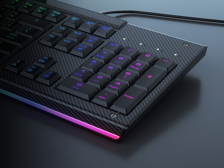 COMBAT RGB combo’s surface sports a unique carbonlike design that gives it a distinctive look. Ideal for a gaming build, Aurora’s eye-pleasing texture creates a futuristic atmosphere that will fit in neatly with the latest gaming components.